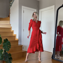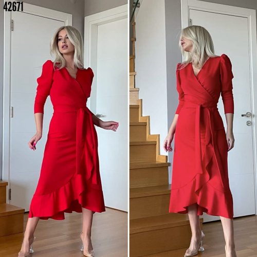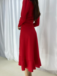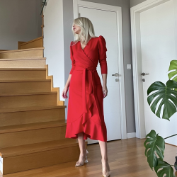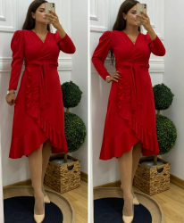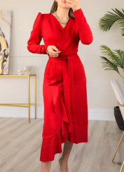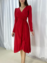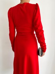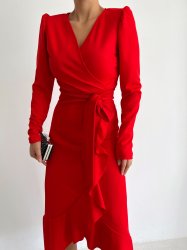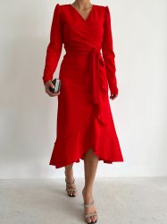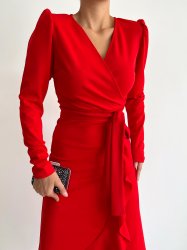 • Krep Kumaş Midi Boy Kuşaklı Uzunkol Elbise