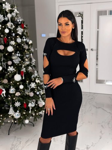 Kadın dekolte detaylı scuba dalgıç kumaş taş aksesuarli elbise